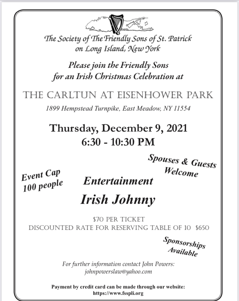 « All Events This event has passed. FSSP Christmas Party December 9, 2021 @ 6:30 pm - 10:30 pm « Annual Golf Outing 36th Annual Emerald Ball » Christmas Party Name* First Last Address* Street Address Address Line 2 City State / Province / Region ZIP / Postal Code Email* PhoneProduct Name*Single TicketTable of 10Number of Tickets or Tables*Total $0.00 Credit Card American ExpressDiscoverMasterCardVisaSupported Credit Cards: American Express, Discover, MasterCard, Visa Card Number Month010203040506070809101112 Year20262027202820292030203120322033203420352036203720382039204020412042204320442045 Expiration Date Security Code Cardholder Name CAPTCHAPlease Press Submit Only Once Δ Add to calendar Google Calendar iCalendar Outlook 365 Outlook Live Details Date: December 9, 2021 Time: 6:30 pm - 10:30 pm Event Category: Holiday Venue Carltun On The Park 1899 Park Blvd Westbury, NY 11590 United States + Google Map