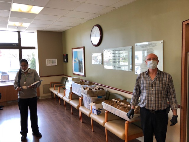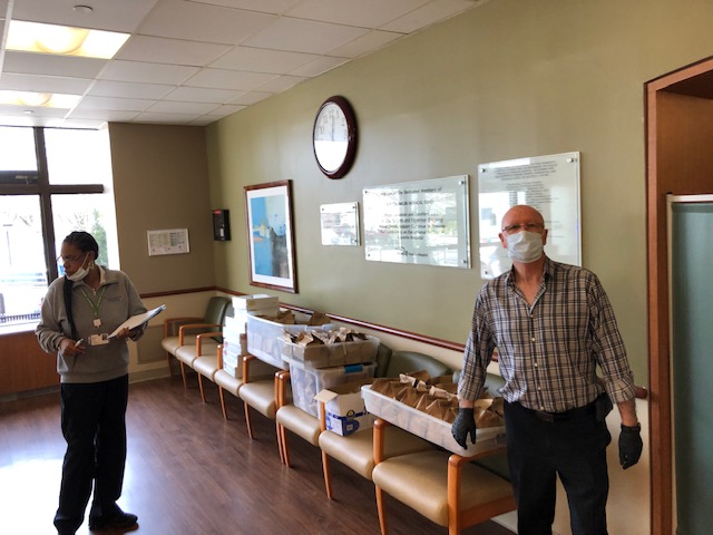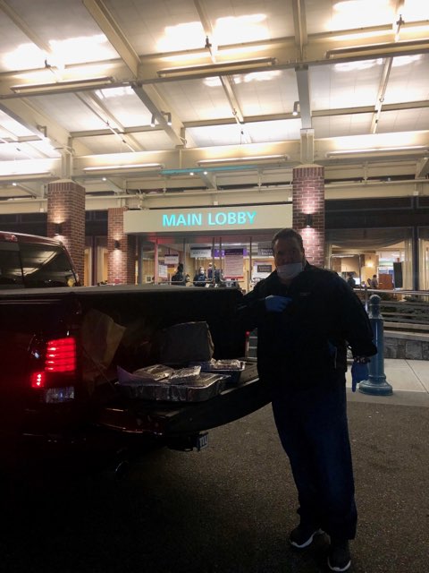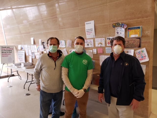 Friendly Sons of Saint Patrick on Long Island deliver 60 Dinners to Northwell Long Island Jewish Valley Stream on Sat 4/4/20. Meals where prepared by Mike Sweeneyfrom Sweeneys Uptown Grill in Garden City